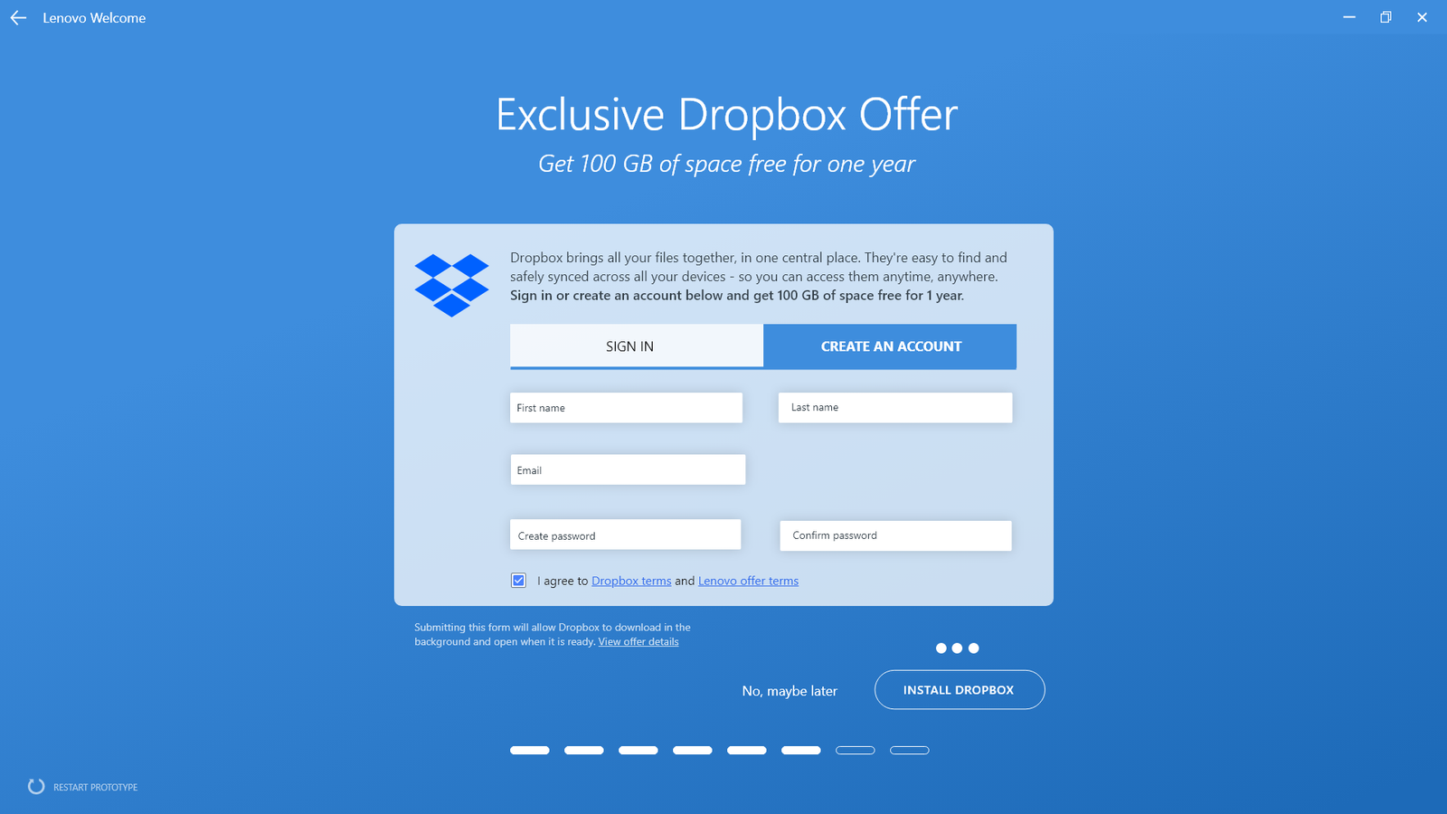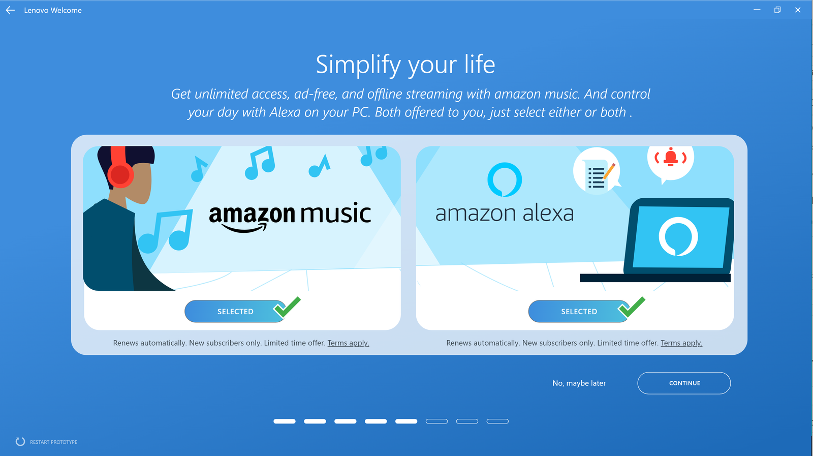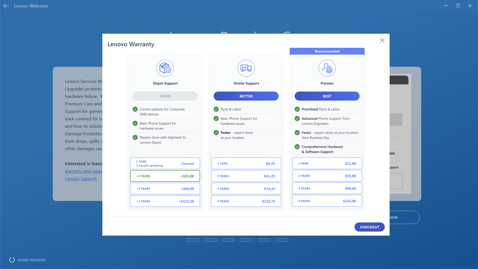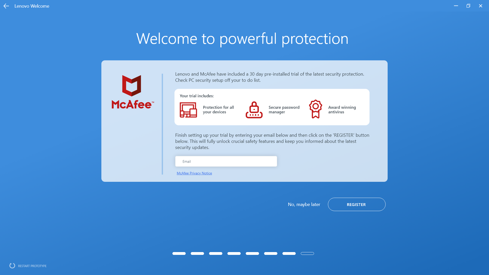 Additional testing before and after launch showed an improved customer experience compared to the original benchmarked experience. Lenovo Welcome is now a responsive experience that appears immediately after the Microsoft Onboarding, but the user is able to either complete or come back to Lenovo Welcome at their own time. Below are listed some improvements that have improved the experience.