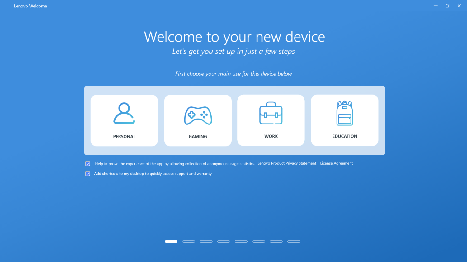 This redesigned experience puts the user at the center, making Lenovo Welcome an engaging, purposeful start to their journey.