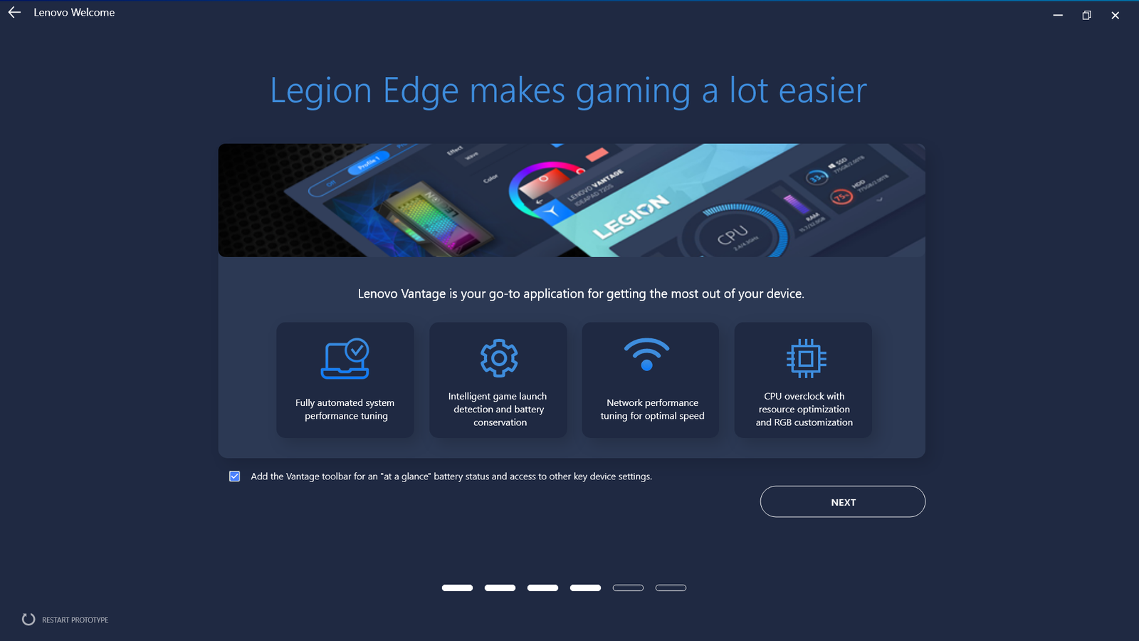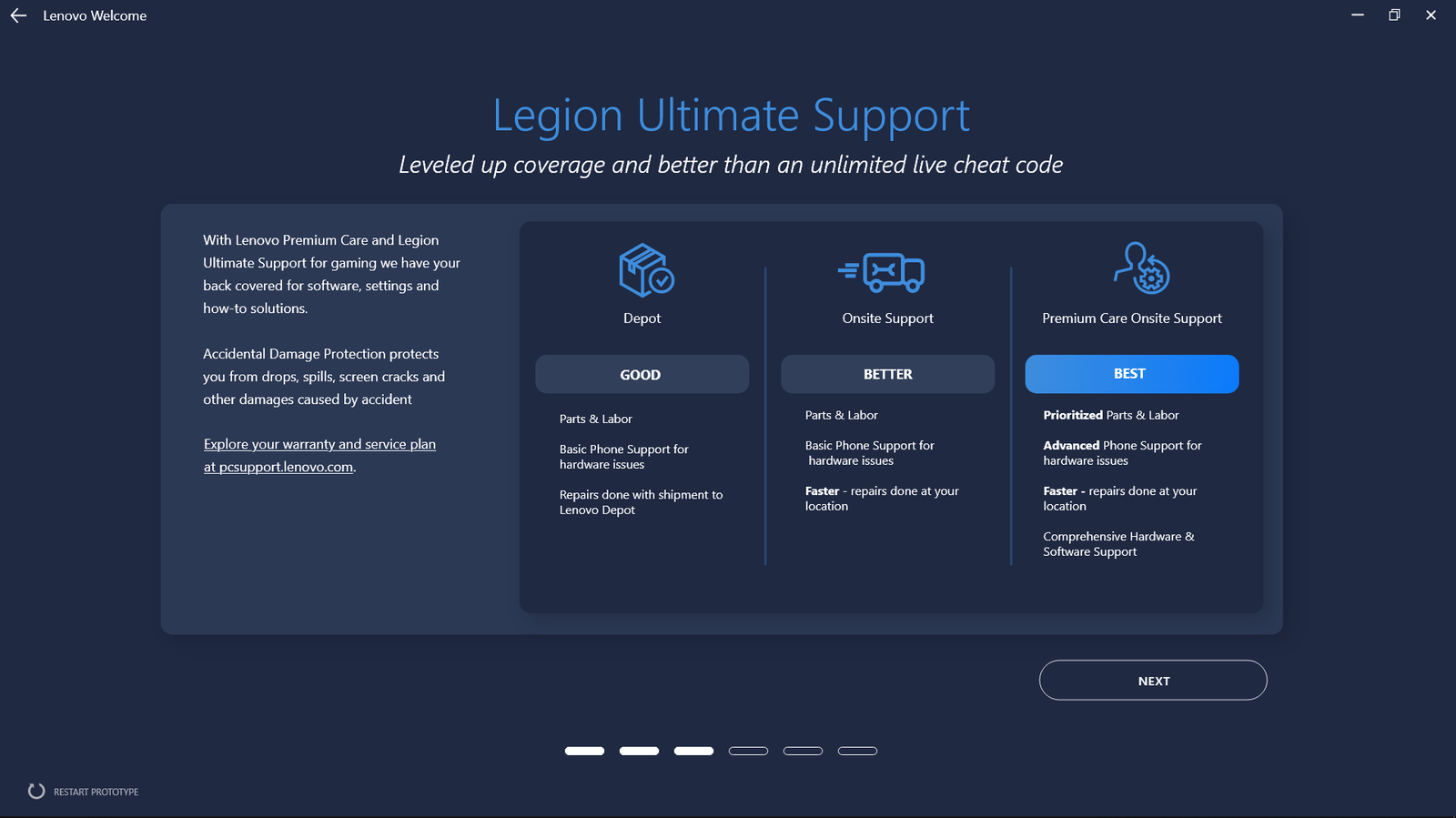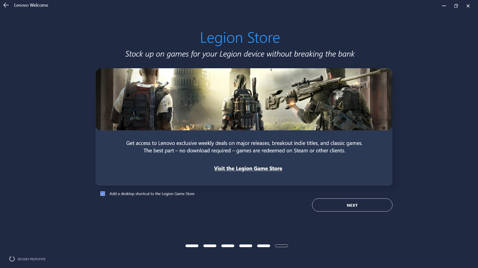 Below is the Legion flow and also the Personal, Work, and Educational flows that launched. Depending on the device the user has will depend on what type of experience they will receive. And then, once the user chooses what best describes how they will be using their device, is what type of offers and information will be shown to them, minus if they already have one of the applications or offers installed.